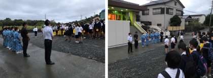 一泊二日でお世話になります味の宿『みち潮』さんに、児童代表が挨拶をしました。