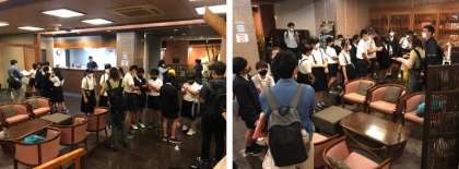 初めてきた施設ですので、もしもの時にスムーズに避難できるようルートを確認します。