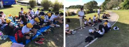 青空のもとで、みんなで食べるごはんはとてもおいしいですね。