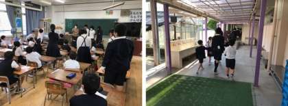 地区ごとに決められた教室に集まるので、1年生が迷わないように6年生が迎えに行き地区ごとに分かれました。