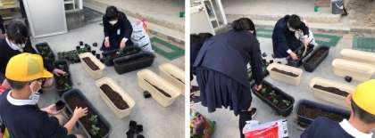 さらに、パンジーのプランターづくり〜飼育栽培委員会