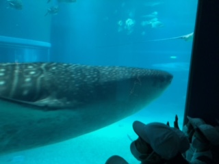教室と同じくらいの長さのジンベエザメに子どもたちは圧倒されていました。