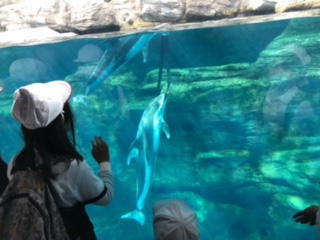 「オウサマペンギンだ」「タカアシガニは深海にいるよ」など、いろいろ教えてくれてる子どもがいたり、「これはなんて言う魚かなぁ」と説明を読む子どもがいたり、たくさんの生き物に興味津々でした。