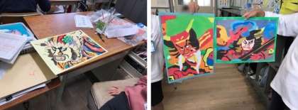 とてもダイナミックな作品ばかりです。担任の先生の作品もホームページに載せさせていただきました。