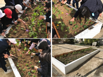 花壇にお花を植えました 〜飼育栽培委員会と夢ちゃん花づくり隊のコラボ〜