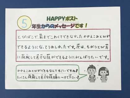 学校ホームページでもハッピーポスト・メッセージとして紹介させていただきます。