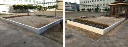 昨日、今日ととても寒い日が続きますね。そのような中、花壇&学習園をより素敵にするため、管理作業員さんが下準備をしてくださいました。