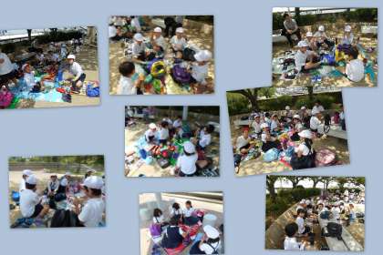 15日、3年生が海遊館に遠足に行きました。中では、班ごとになかよく見て回り、天保山公園でお弁当を食べました。とても暑い一日でしたが、楽しみました。海遊館で見てきた生き物の絵を図工の時間に描いていきます。