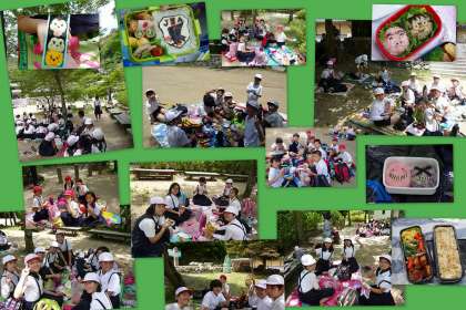 18日、4年生、5年生が一緒に箕面公園に遠足に行きました。自然がいっぱいの中、滝でマイナスイオンのシャワーを浴びたり、昆虫館で珍しい昆虫を見たり、放蝶館で蝶の神秘的な美しさに目をうばわれたり。お弁当タイムも楽しいひと時でした。