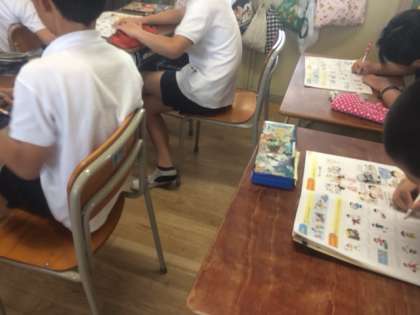 の表現を繰り返し、チャンツなども取り入れて楽しく学びました。