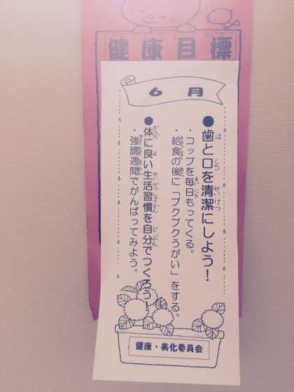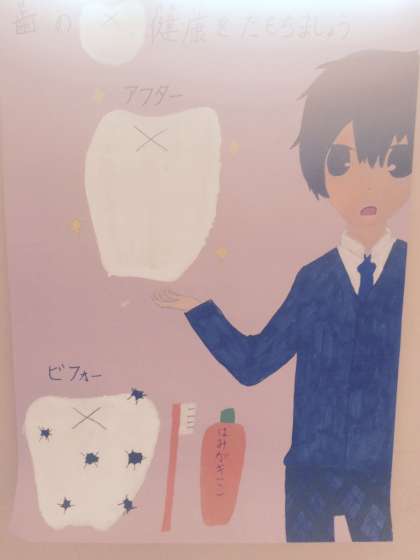 歯と口の衛生週間です。標語とポスターを作って学校のあちらこちらに掲示しています。
