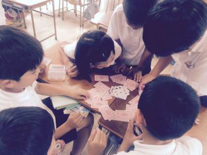 トランプを学校で購入し、各クラスに配っています。雨の日は仲よくトランプ遊びをしたり、本を読んだり。手品や一休さんをして楽しんでいました。