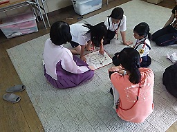 7時間目の民族クラブの時間では、ユンノリをして遊びました。ユンノリとはすごろくのような遊びです。