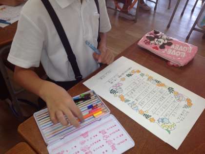 「いつもいろいろなことをおしえてくださり、ありがとうございます。いつまでもお元気でいてください。9月29日の運動会、よかったら見に来てくださいね。」など、子どもたちは、地域のお年寄りに心をこめて手紙を書き、毎年「敬老の日」にプレゼントをしています。日ごろ、見守り活動をしていただいたり、昔遊びなどを教えていただき、大変お世話になっています。ありがとうございます。楽しみにお待ちくださいね。