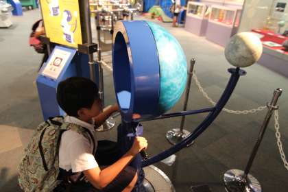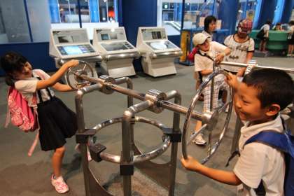 展示場では、光の屈折のちがいで色の見え方が変わることや、地球と木星では重さの感じ方がちがうことなどを体感することができ、驚き、感動している子どもたちの姿が印象的でした。