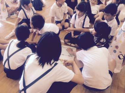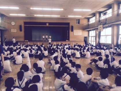 集会の後、いつものように6年生が、集合や話し合いの仕方などについて、より楽しく、気持ちのよい活動になるように振り返りをしていました。頑張る6年生です。