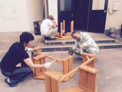新しいテーブルを中庭に置きます。これは、宮谷元校長先生からいただいた記念のテーブルです。防水用のニスを塗って、来週には中庭に置く予定です。
