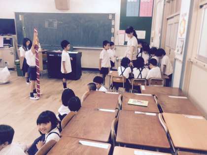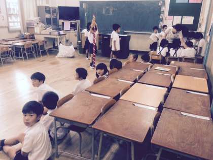 教室の準備や受付、ルール説明など明日に向けて各学級では最後の仕上げに全力投球です。1年生も頑張っています!