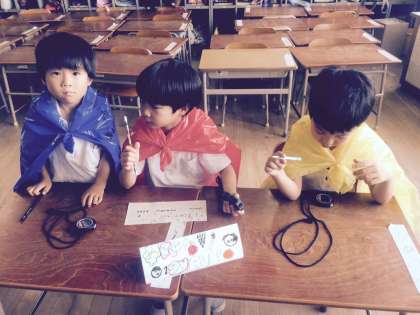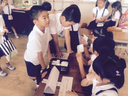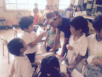 じゃんけん、クイズなどに答えて行きます。なかなか難しいクイズもありました。一生懸命ルールの説明をする1年生です。