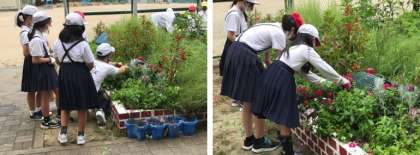 先日お越しいただいた十三公園事務所のみなさんからのアドバイスで、飼育栽培委員会のみんながニチニチソウをピンチ(摘芯)することになりました。