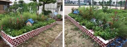 地域の方々と種から育てている花壇の花がとっても大きくなりました。