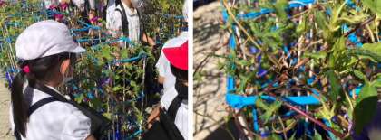 タブレットを使って、見つけた種を撮影していました。