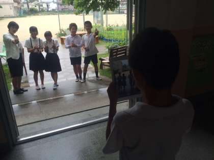 学校の良いところを探してビデオに編集しています。中庭も落ち着いた雰囲気で、西三国小学校の自慢の場所です!