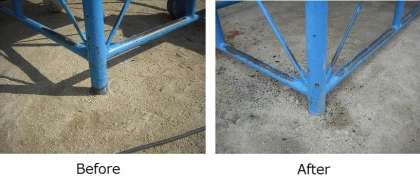 運動場の朝礼台の脚が錆びて、危険な状況でした。そこで、脚を修理して地面にしっかり固定しました。これで大丈夫です。
