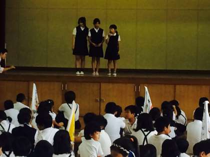 数合わせゲームをしました。自分の持っているカードの数と合計して10や20になる相手を見つけるゲームです。知らない学年の人にも声をかけて見つけていくゲームでした。集会のあと、いつも通り6年生は、集合の仕方、ゲーム中の気配りなどについてふりかえりをしました。みんなが楽しく、気持ちよく過ごすにはどうしたらよいか考えることができる6年生です。