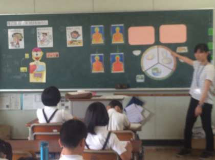 「朝食の大切さを知ろう」というめあてで、三国小学校のF栄養教諭に教えてていただきました。朝食を食べてくる子は結構たくさんいます。バランスのよいメニューで食べることができたらもっと元気で活動できるようになるかもしれませんね。