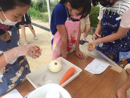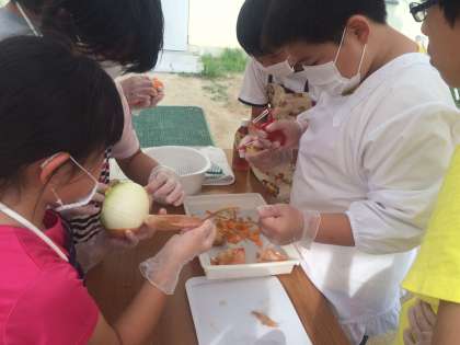 カレー作りの真っ最中!包丁さばきもなかなかですよ!