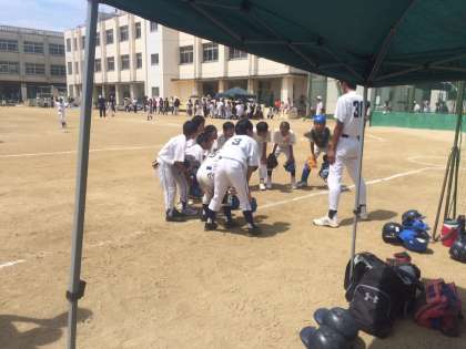 十三中学で子ども会ソフトボールの試合が始まっています。西三国チームは、木川小学校と対戦していて、1点リードしています。とても暑いですが、ファイトも熱く燃えています!がんばれ、西三国チーム!!