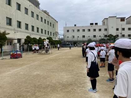 今日は全校集会の前に、今月の健康目標を発表しました。