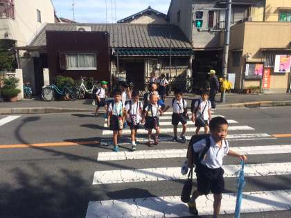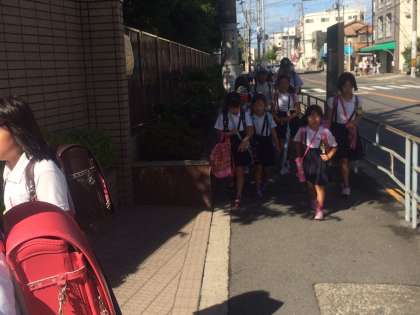 まだ雨も降っていなかったので、セミの鳴き声が校門の桜の木からよく聞こえました。元気よく登校です。