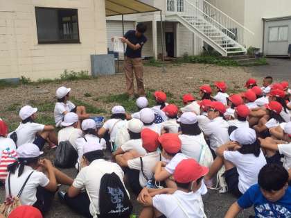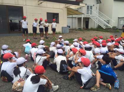 今から魚つかみです。係が、魚のクイズを出してくれました。魚つかみの説明やブヨについての話を聞きました。静かにするといろんな音が聞こえてきます。