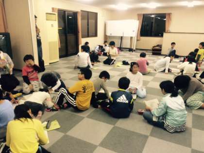 一日の活動を活動班で振り返りをしました。よく頑張った事などを互いに伝えたり、自分でも気づき、しおりに記入しました。明日も頑張ろうと書いていた子がたくさんいました。