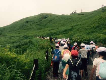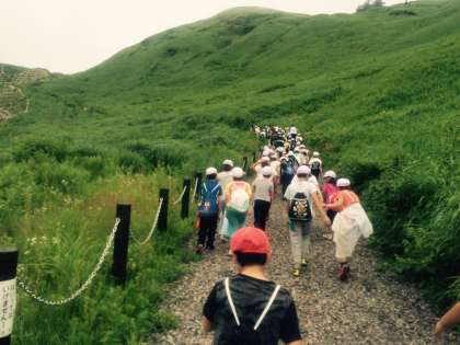高丸山を目指してのぼっています。しんどくなった時の飴を2つくばりましたが、もうすでに食べてしまった子も!