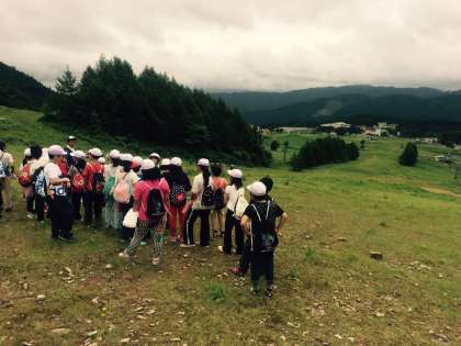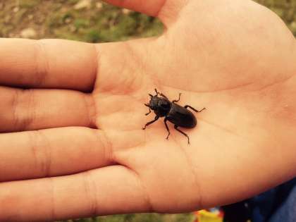 宿舎までもうすぐらです。コオロギやバッタなどたくさんの虫も見つけました。O君が見つけたこの虫なーんだ?