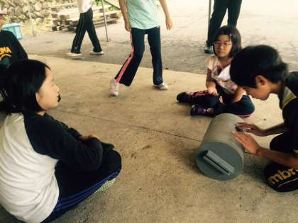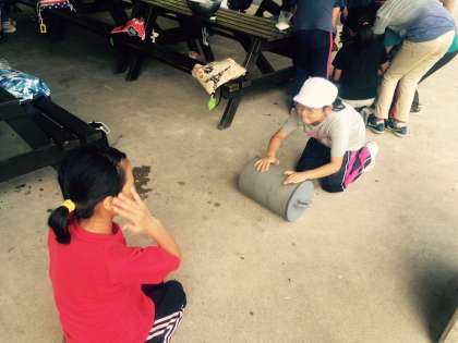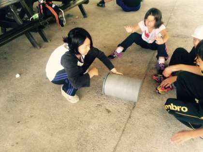 筒を15分間転がしています。心を込めて、みんなで協力してね!