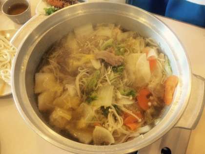 夕食メニューは、鴨鍋です。