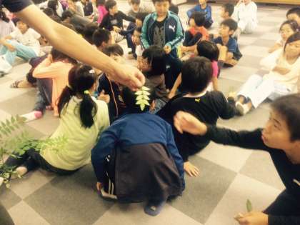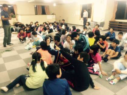 宿舎のNさんに森の話をしていただきました。クロモジと山椒の枝を持ってきてくださり、植物の匂いについてから始まって、自然を体で感じて欲しい、という話をしてくださいました。また、鹿や熊は耳が前の方にむいていて、生きていくためにはよく音を聞いて敵から身を守るということも話してくださり、皆さんもよりよく生きていくため、人の話をよく聞くことが大切ですと教えてくださいました。自然の中で暮らすこととご自身の生き方を重ねて含蓄のある話をしてくださいました。そのあと、真っ暗な森の中をロープだけを頼りに散策しました。土ボタルの小さな光や、樹木の匂いなどを感じながら歩きました。普段できない貴重な体験でした。
