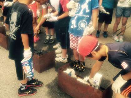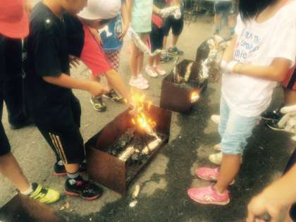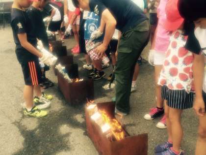 新聞紙に包んだり、牛乳パックに入れて焼きました。