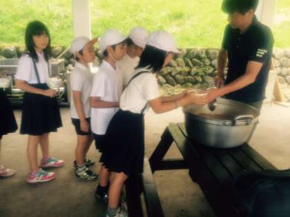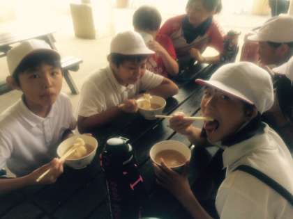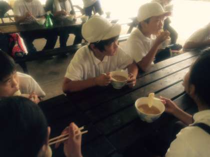 つきたてのお餅を豚汁にしていただきました。とっても柔らかくておいしかったです。おかわりもいっぱいしました。
