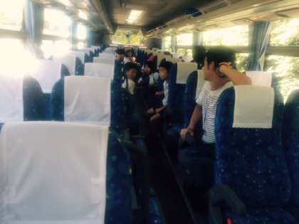 ばすの中では、バスレク係がずっと怖い話やちょっとヒヤッとする話、びっくりする話、幼稚園の頃のへえな話でもりあげています。疲れている子はぐっすり眠っています。