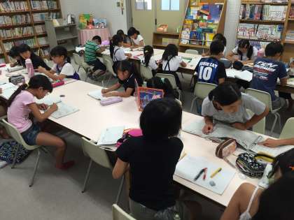 夏休みの宿題をしたり、図書室の本を読んだりしています。