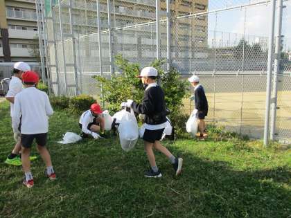 地域とのふれあい活動の一環として、4年生は十八条中央公園とその周辺の清掃活動を行いました。