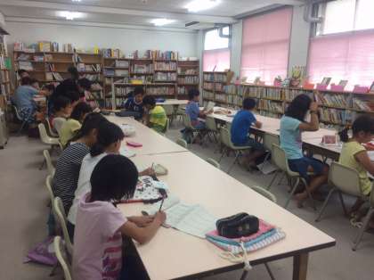 プール水泳に参加しない子も、参加してから来る子もみんな静かに本を読んだり、宿題や学習をしたりしています。