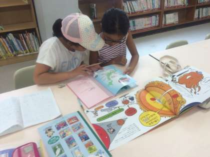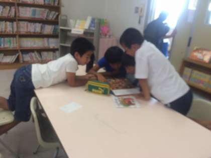 今日は「校長先生と勉強しようデー」を図書ボランティアさんの応援もいただきながら行いました。世界遺産について調べたり、読書感想文を書く本を選んだりなど自主学習、自由研究の題材を探している子がたくさんいました。夏休みの宿題を持って来てやっている子ももちろんいます。わくわく教室と同じ時間帯に図書室を開けています。インターネットも使用できるので図書室をもっと活用して欲しいと思っています。