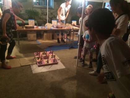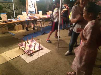 輪投げコーナーでもりあがつています。卒業生が大当たりを出しました!