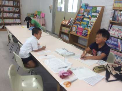 今日は、「校長先生と勉強しようデー」最終日でした。参加は少なかったのですが、それぞれ自分の課題に一生懸命取り組んでいました。図書館開放とわくわく教室は、24日からまた始まります。本の貸し出しや返却も行っていますので、どんどん利用してください。待っています。
